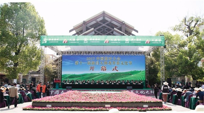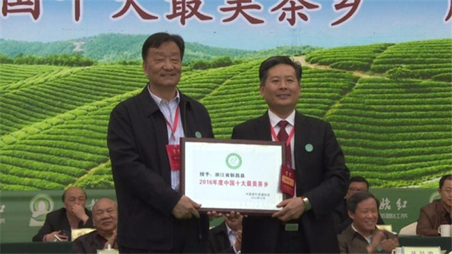 2017年4月15日,由中国茶叶流通协会与中国国际茶文化研究会等单位联合主办的“2017中国茶叶大会暨第十一届新昌大佛龙井茶文化节”在浙江新昌中国茶市盛大开幕。中国茶叶流通协会常务副会长王庆出席开幕式致辞并向新昌县授予“中国十大最美茶乡”牌匾。