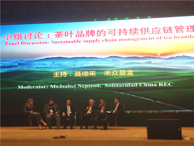 随后,大会采用小组讨论的会议形式,由禾众基金中国办公室项目经理IsabelNepstad女士主持,邀请全球茶叶产销国家代表围绕茶叶品牌的可持续供应链管理进行了现场讨论,内容包括茶叶质量安全、技术人力资源、贸易市场管理、茶叶产品营销等。讨论小组从茶叶产销的不同角度出发,基于各国茶业发展情况,为参会代表们带了一场精彩的头脑风暴。