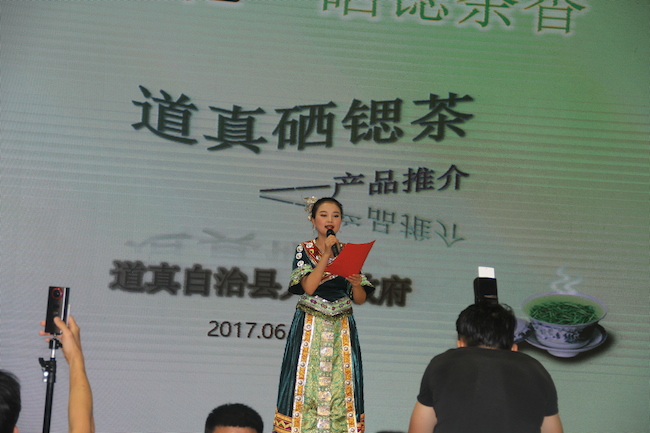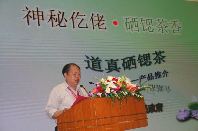 会上,道真自治县人民政府县长杨润民介绍了道真源远流长的茶历史以及久负盛名的茶品质。道真县的民间种茶、制茶、爱茶、嗜茶风俗浓厚,仡山大宴“三幺台”以茶开席、味美情浓;原生态民族茶食、茶饮、茶俗、茶事、茶礼与民间传唱的十二月茶歌、仡山茶酒歌、敬茶歌等,共同创造了绚丽多姿、别具一格的仡佬族茶文化。“高海拔、低纬度,多云雾、寡日照、有机质、无公害”是道真硒锶茶得天独厚的生态优势,赋予了道真硒锶茶“香高味浓、香味持久、色泽翠绿明亮、滋味清醇鲜爽”等特质;道真茶还富含锶硒等微量元素,硒含量0.01~0.07mg/kg、锶含量1.7~10.8mg/kg,具有防癌治癌、防治心血管疾病等独特保健功效。