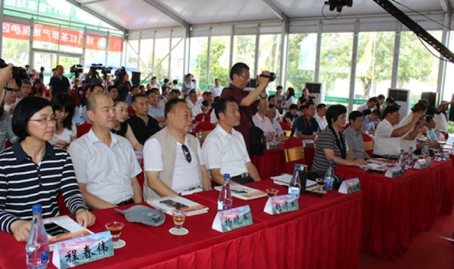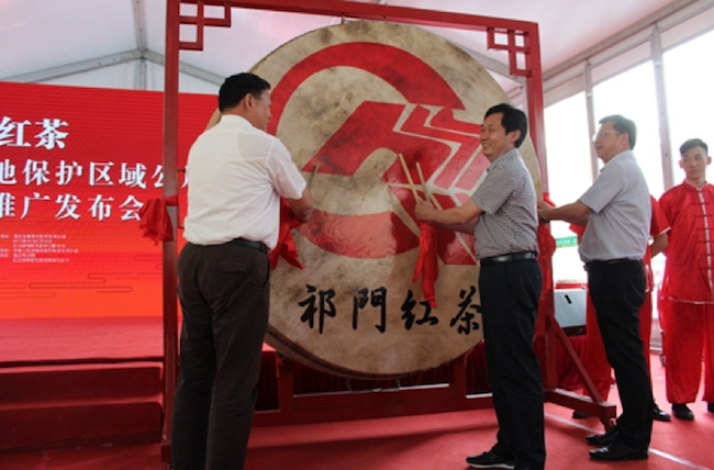 发布会上祁门县祁门红茶协会秘书长胡军辉同志做了主旨演讲,他向大家介绍了祁门红茶原产地商标申报坎坷的历程、祁门红茶原产地商标的使用规则并热忱邀请国内外人士来祁门参观考察、投资兴业,把祁门红茶做大做强。在隆重的击鼓起航仪式上,黄山市人民政府副市长徐德书、黄山市人大副主任胡新方、黄山市农业委员会主任王武、祁门县人民政府副县长李胜杰同志、祁门县人大副主任程春伟、祁门县农业委员会主任郑世瑜同志敲响“天下第一鼓”,展示了祁门红茶争做天下第一茶的远大理想与抱负。