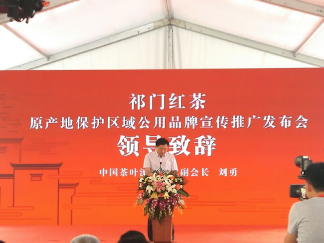 2017年6月16日下午,由中国茶叶流通协会、北京市西城区人民政府、安徽省黄山市人民政府、祁门县人民政府、北京市茶业协会等单位主办的《祁门红茶红遍全球----祁门红茶原产地保护区域公用品牌宣传推广发布会》在马连道茶城外广场隆重举行。西城区区委常委、政法委书记、统战部部长王旭,中国茶叶流通协会副会长刘勇,黄山市人民政府副市长徐德书,黄山市政协副主席顾家雯,黄山市人大常委会副主任胡新方,北京市茶业协会会长白文祥,黄山市农业委员会王武,西城区商务委员会副主任马佩鸿,祁门县人民政府副县长李胜杰,祁门县人大副主任程春伟,北京安徽茶业商会(北京茶业协会徽茶分会)会长胡洪华及茶界、企业界、文化界人士等500余人参加了宣传推广发布会。