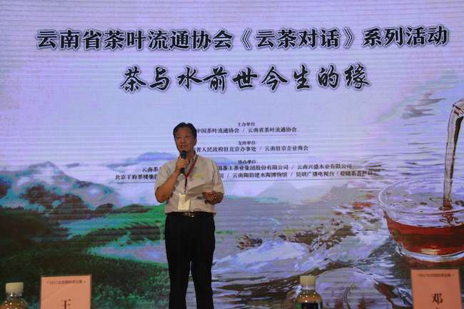 2017年6月18日下午,一场以“茶与水前世今生的缘”为主题的茶事对话在北京展览馆活动区进行。中国茶叶流通协会常务副会长王庆、北京市西城区人民政府副区长徐利、云南省茶叶流通协会会长陈勋儒等主办方领导及茶界同仁、云茶爱好者近两百人参与了这场对话。