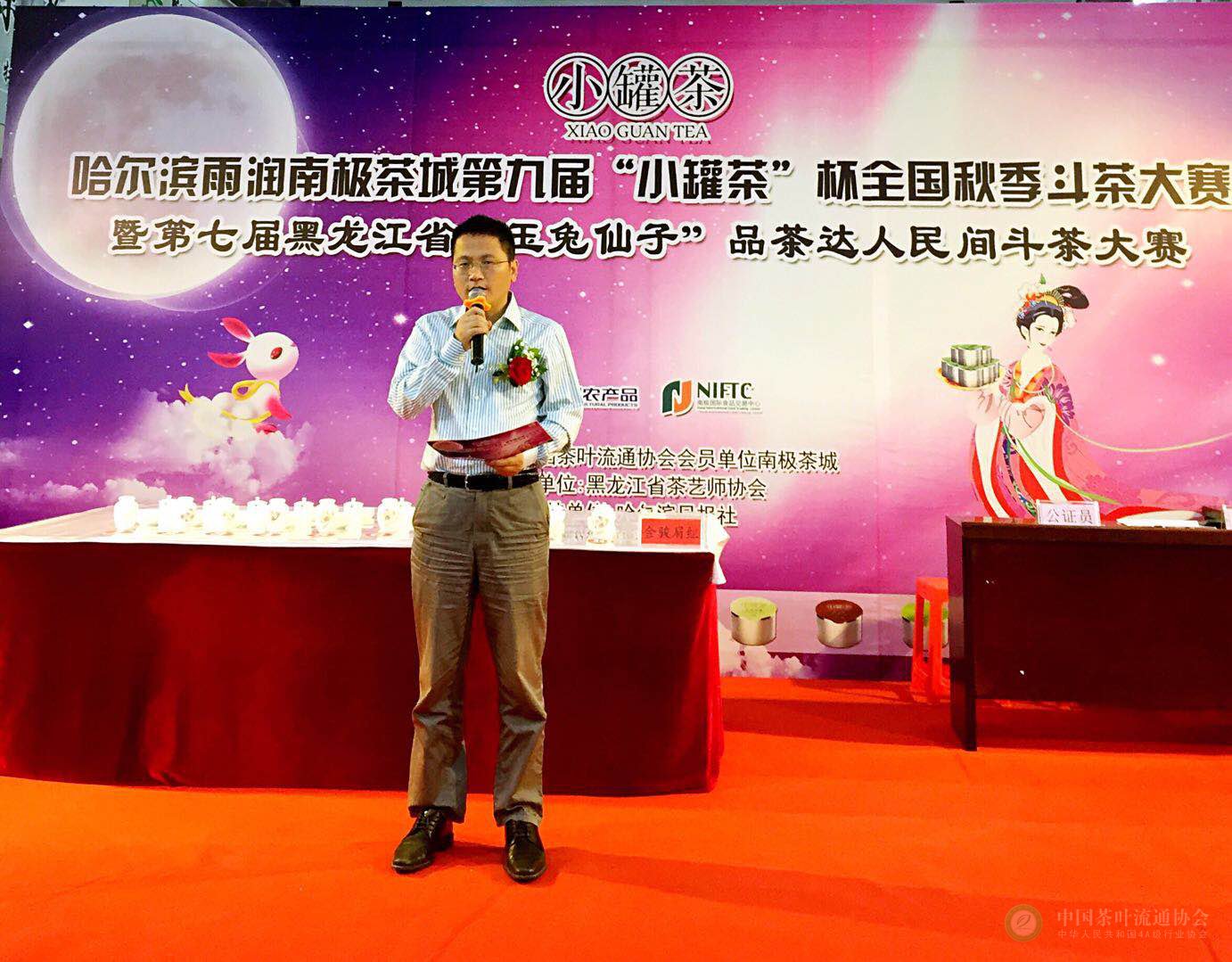 经过半个月的角逐,由哈尔滨雨润南极茶城主办、黑龙江省茶艺师协会协办、哈尔滨日报大力支持的“第九届‘小罐茶’杯全国秋季斗茶大赛暨第七届黑龙江省‘玉兔仙子’品茶达人民间斗茶大赛”于9月23日在南极茶城拉开了总决赛的序幕。中国茶叶流通协会副秘书长朱仲海应邀请出席会议并致辞。