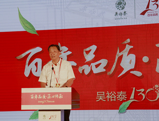9月28日下午,“吴裕泰130周年庆典活动”在北京新闻大厦举办。中茶协常务副会长王庆出席活动并致辞,盛赞京城百年老字号——吴裕泰的不断传承及现在所取得的辉煌成就,并祝愿吴裕泰在未来的日子里坚持弘扬与传承传统文化,不断壮大,延续国茶的光荣与骄傲。