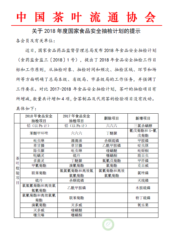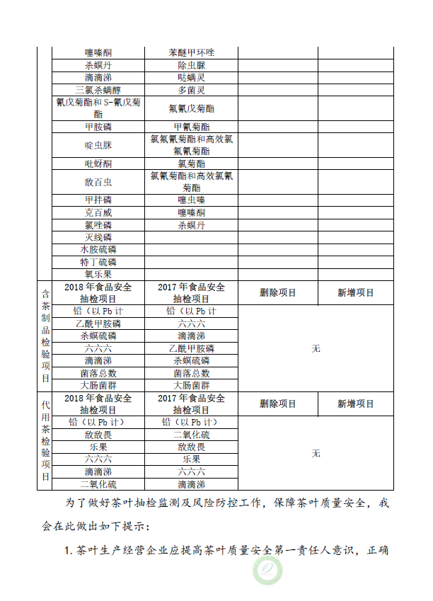 关于2018年度国家食品安全抽检计划的提示