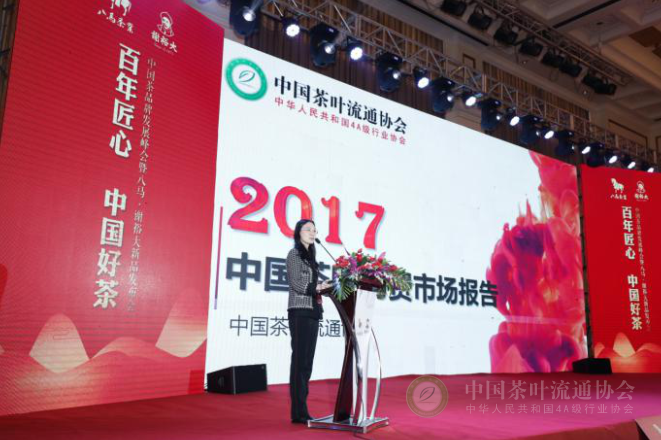 中国茶叶流通协会副会长姚静波受邀出席并致辞,她谈到:“过去的2017年,对中国茶行业来说,是振奋人心的一年,也是中国茶行业砥砺前行的一年,我们深刻认识到市场需求的转化升级,消费者对于茶叶产品的需求已经由“有没有”变为“好不好”。如何培育具有全球影响力的国际品牌,真正实现中国茶业经济与中国品牌的实力对位是时代出给我们的新问卷。这份正在书写的答案中,合作、共赢是最闪亮的一笔,更是的我在今天的会场最深刻的感受与领悟。“