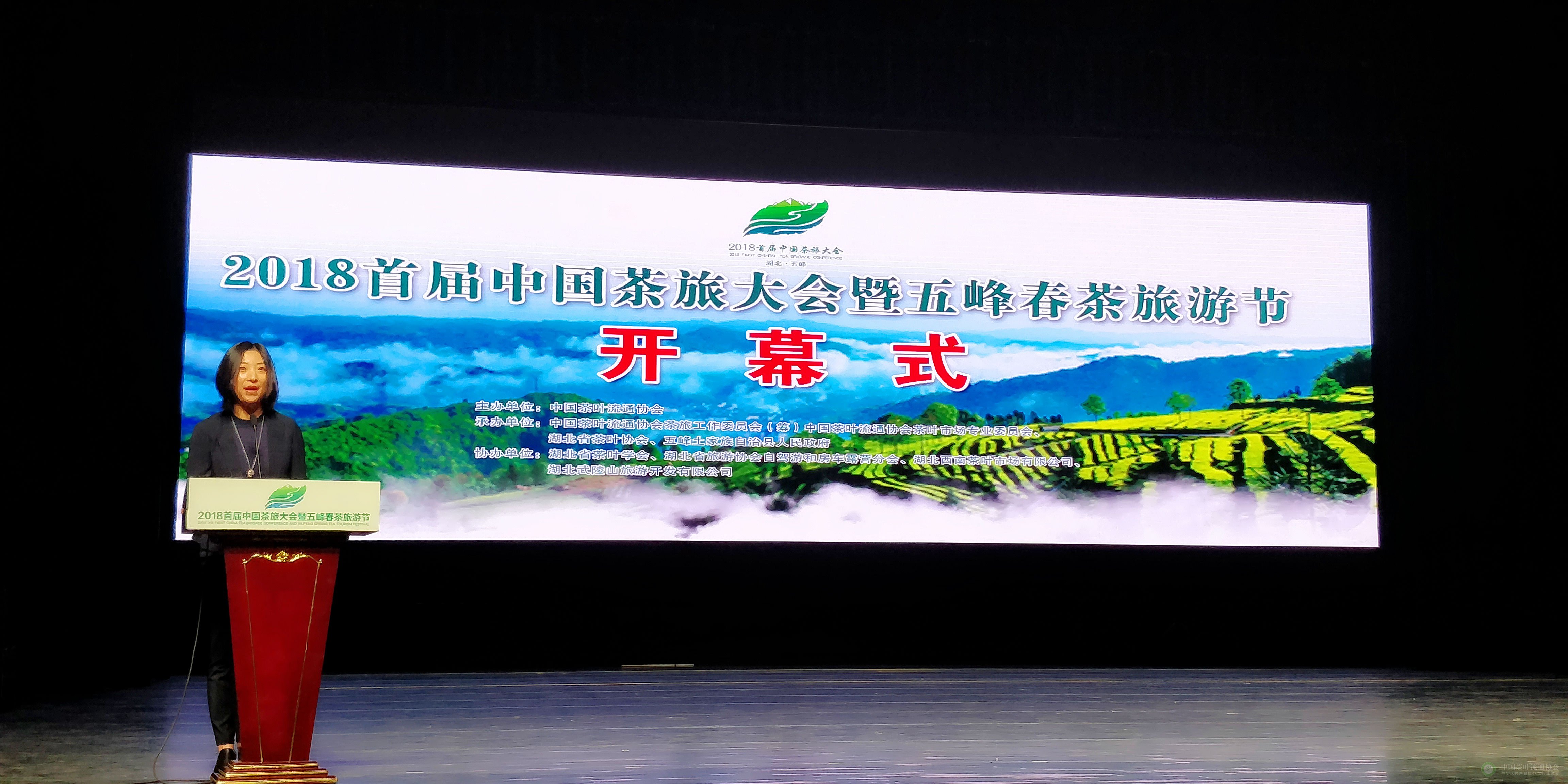 4月14日上午,由中国茶叶流通协会主办,中国茶叶流通协会茶旅工作委员会、茶叶市场专业委员会、湖北省茶叶协会和五峰土家族自治县人们政府联合承办的“2018首届中国茶旅大会暨五峰春茶旅游节”在五峰盛大开幕。中国茶叶流通协会会长王庆,湖北省政协常委、省供销社副主任张永红,宜昌市人大常委会副主任、中共五峰县委书记陈华,宜昌市人民政府副市长周正英等领导出席开幕式,来自全国各地的450余名专家学者、茶旅行业代表、茶商齐聚土家茶乡,聚焦中国茶旅产业发展,共同感受五峰春茶旅游节的独特魅力。