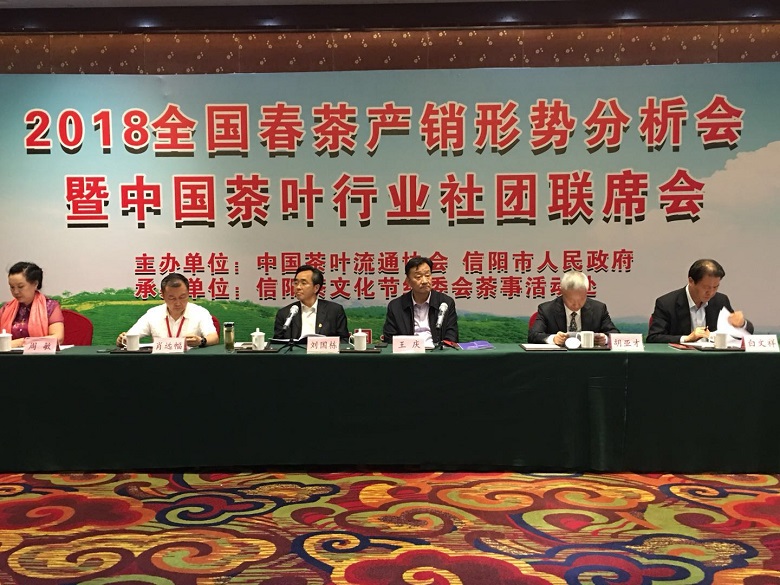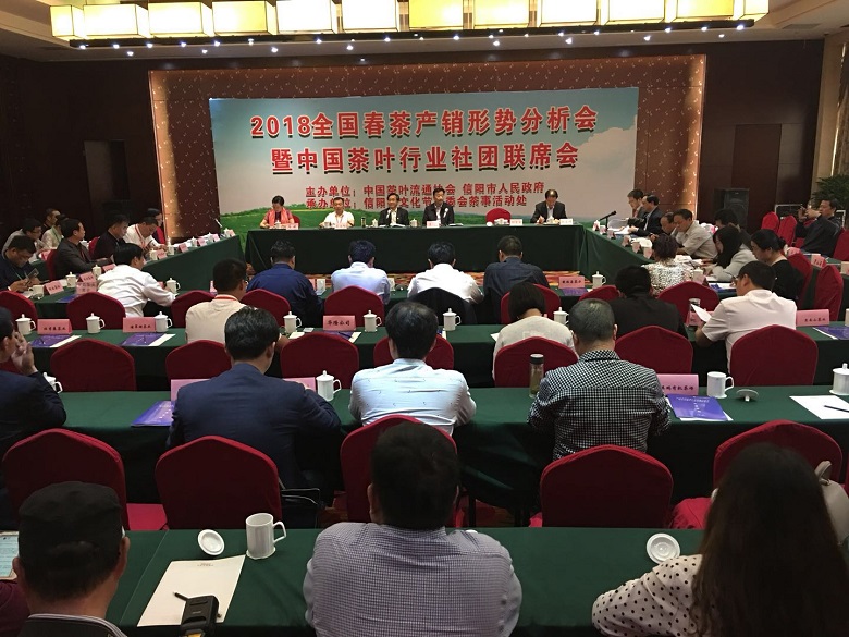 4月28日下午,由中国茶叶流通协会和信阳市人民政府共同主办的“2018全国春茶产销形势分析会暨中国茶叶行业社团联席会”在河南省信阳市成功举办。
