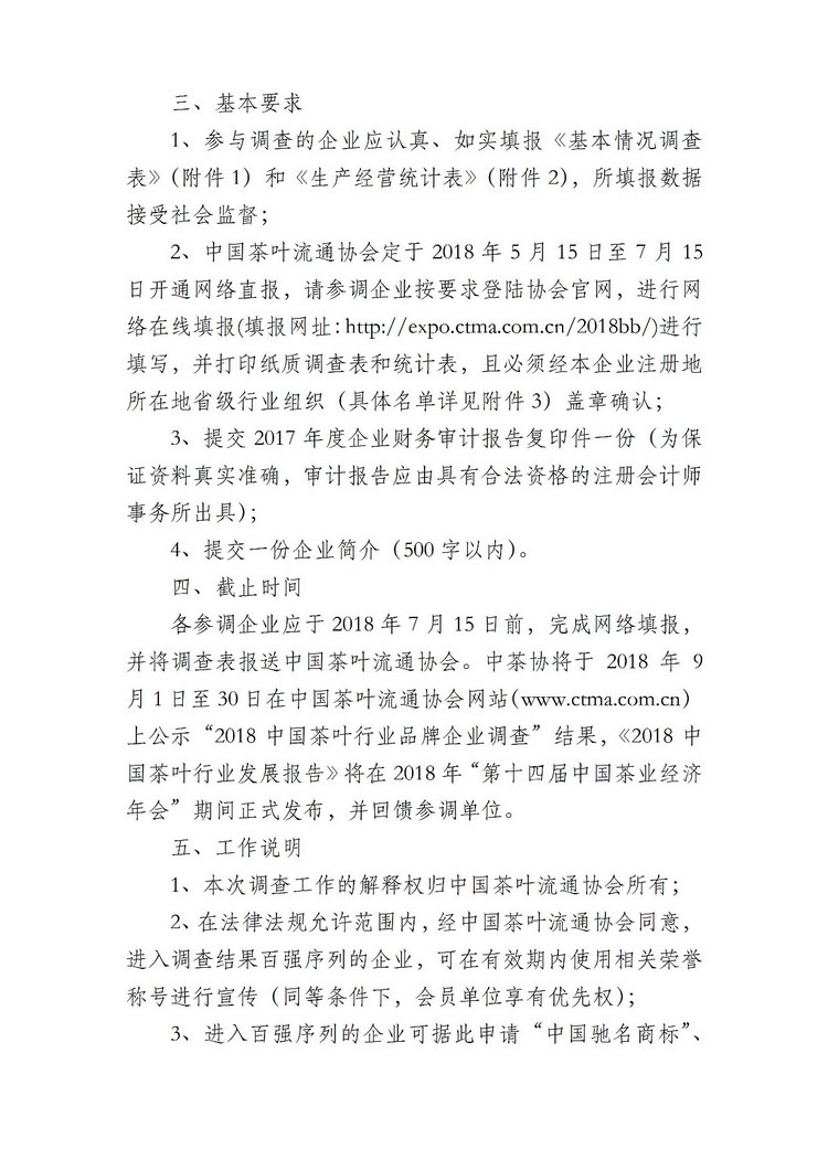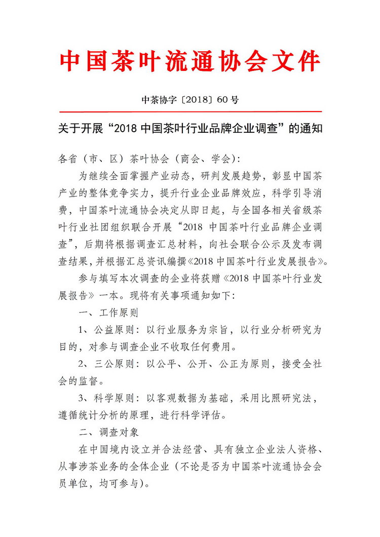 关于开展“2018中国茶叶行业品牌企业调查”的通知