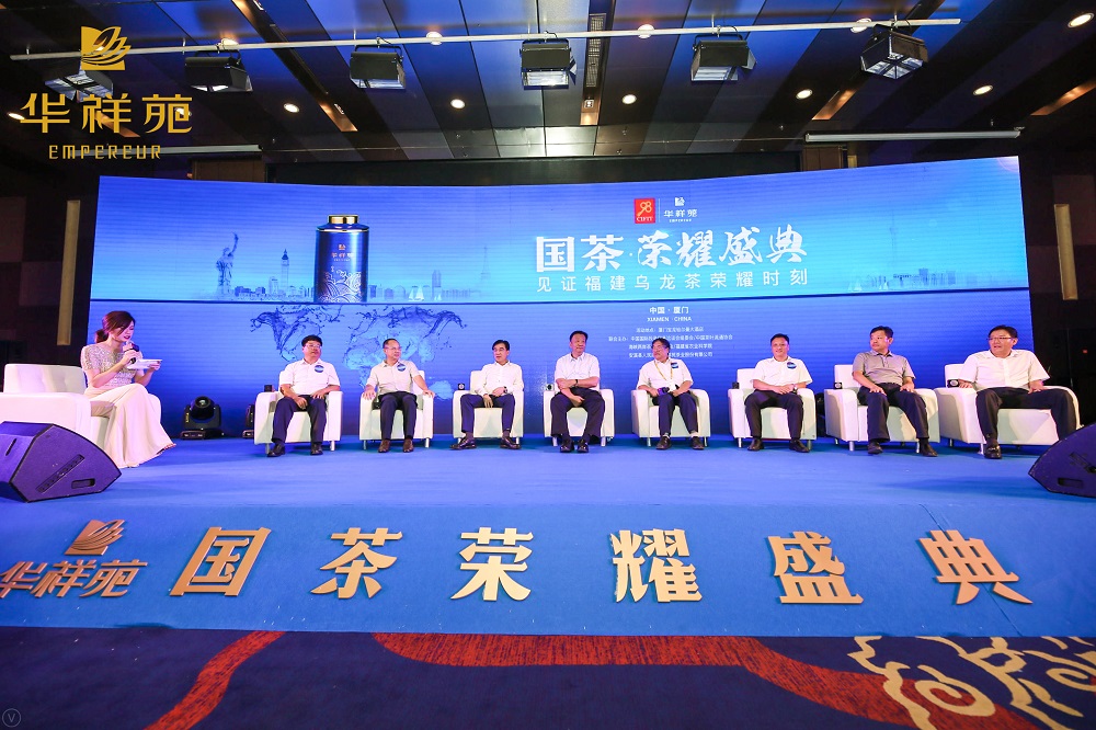 2018年9月8日,98贸洽会分会场“国茶荣耀盛典”在厦门召开。中国茶叶流通协会会长王庆,海峡两岸茶业交流协会会长陈绍军,武夷山市委书记林旭阳,安溪县人民政府副县长肖印章,中茶协副会长、华祥苑茶业股份有限公司董事长肖文华,及福建省农业科学院副院长余文权等众多领导和茶界专家、企业家出席了本次活动,见证了我国茶业史上值得铭记的“国茶档案”,并深入探讨分析了近一年来七次中国外交茶叙,三度代表中国礼赠国外元首这一荣耀背后的关键动力,及中国茶如何抓住这一历史机遇,赢得更大发展。