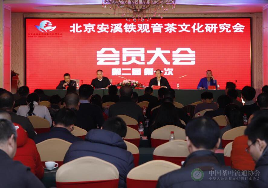 2019年1月21日下午,北京安溪铁观音茶文化研究会第二届第一次会员大会暨北京安溪企业商会年会在京举行。中共安溪县委副书记庄稼祥,中国扶贫开发协会宣传教育委员会副主任马昌奎,中国茶叶流通协会副会长、北京市茶业协会会长白文祥、北京安溪铁观音茶文化研究会会长苏谈益等领导嘉宾出席。受中国茶叶流通协会王庆会长委托,梅宇秘书长到会致贺。