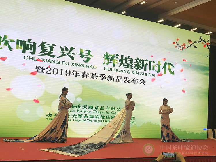 4月15日下午, 中国茶叶流通协会副会长单位云南白药天颐茶品有限公司在京举办了“吹响复兴号 辉煌新时代”暨2019年春茶季新品发布会。中国茶叶流通协会会长王庆,第十二届全国政协委员、中国文物保护基金会理事长励小捷,第十三届全国政协委员、原中国国家博物馆馆长吕章申,全国第十二、十三届政协委员白水清等领导嘉宾出席活动。
