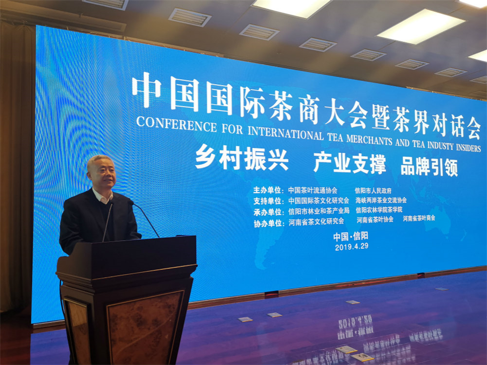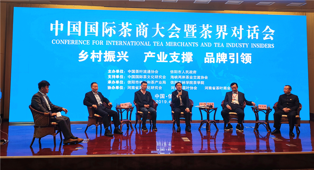 中国茶叶流通协会常务副秘书长朱仲海作了《当前中国茶叶基本情况解读》主题演讲,阐述了当前我国茶叶的产销形势、出口情况以及茶行业的相关发展建议;中国农业科学院茶叶研究所姜仁华书记,中华全国供销合作总社杭州茶叶研究院党委书记、副院长郑国建,中国科学技术大学公共事务学院院长宋伟教授,河南省供销电子商务有限公司总经理田云峰,中国茶叶流通协会副会长、信阳文新毛尖集团董事长、全国人大代表刘文新作为特邀嘉宾,共谋乡村振兴,共议产业发展,为信阳茶产业发展建言献策。