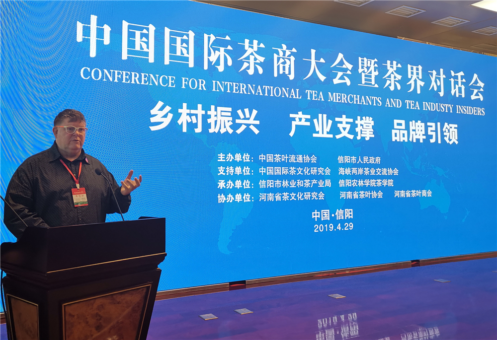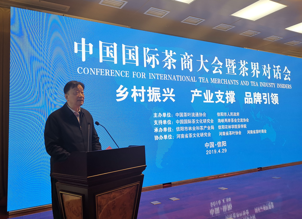 4月29日上午,中国国际茶商大会暨茶界对话会在信阳百花之声国际会议厅隆重召开,本届大会由中国茶叶流通协会和信阳市人民政府共同主办,中国茶叶流通协会王庆会长,信阳市人民政府胡亚才副市长,中国科技大学公共关系事务学院院长宋伟、中国农科院茶叶研究所姜仁华书记、中华全国供销合作总社杭州茶叶研究院党委书记、副院长郑国建、全国有关省市茶行业组织负责人以及几内亚驻华公使参赞巴.迪埃赫诺.马德儒、刚果(布)驻华大使助理、秘书保罗·古斯塔夫、澳大利亚精品茶协会会长大卫·帕纳姆等15个国家和地区的茶界代表近300人参加了本次会议。
