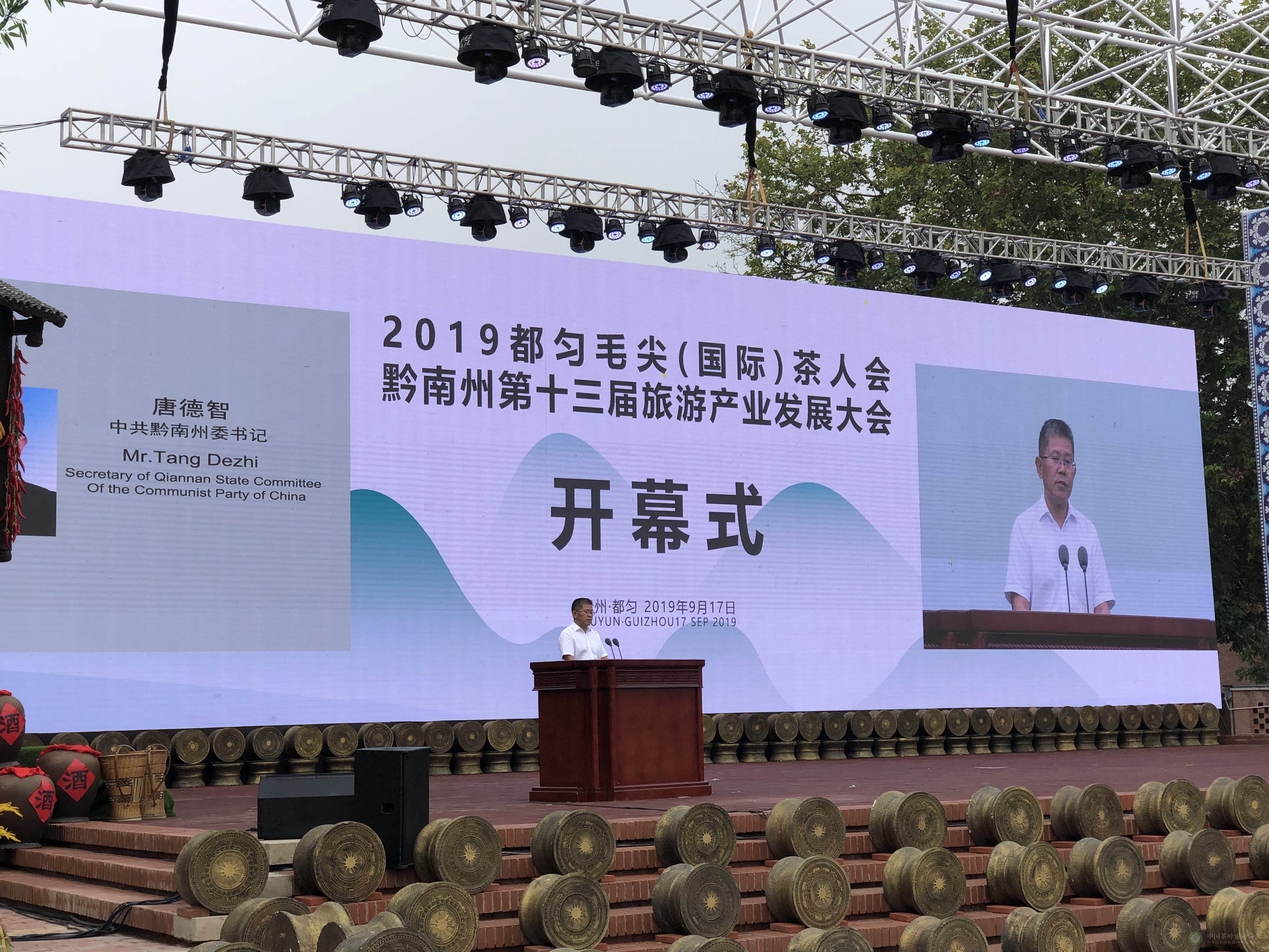 金秋硕果收获季,毛尖茶香聚宾客。9月17日上午,由中国茶叶流通协会、中国国际茶文化研究会、黔南州人民政府、贵州省农业农村厅等单位共同举办的2019都匀毛尖(国际)茶人会暨黔南州第十三届旅发大会在“山水桥城光影茶都”都匀市盛大开幕。开幕式上,中共黔南州委书记唐德智和中共黔南州委常委、都匀市委书记王建忠分别致辞,中国茶叶流通协会授予都匀毛尖“中国高端绿茶特色品牌”称号,黔南州人民政府州长吴胜华作旅游推介,并举行了招商项目及旅游联盟签约仪式。