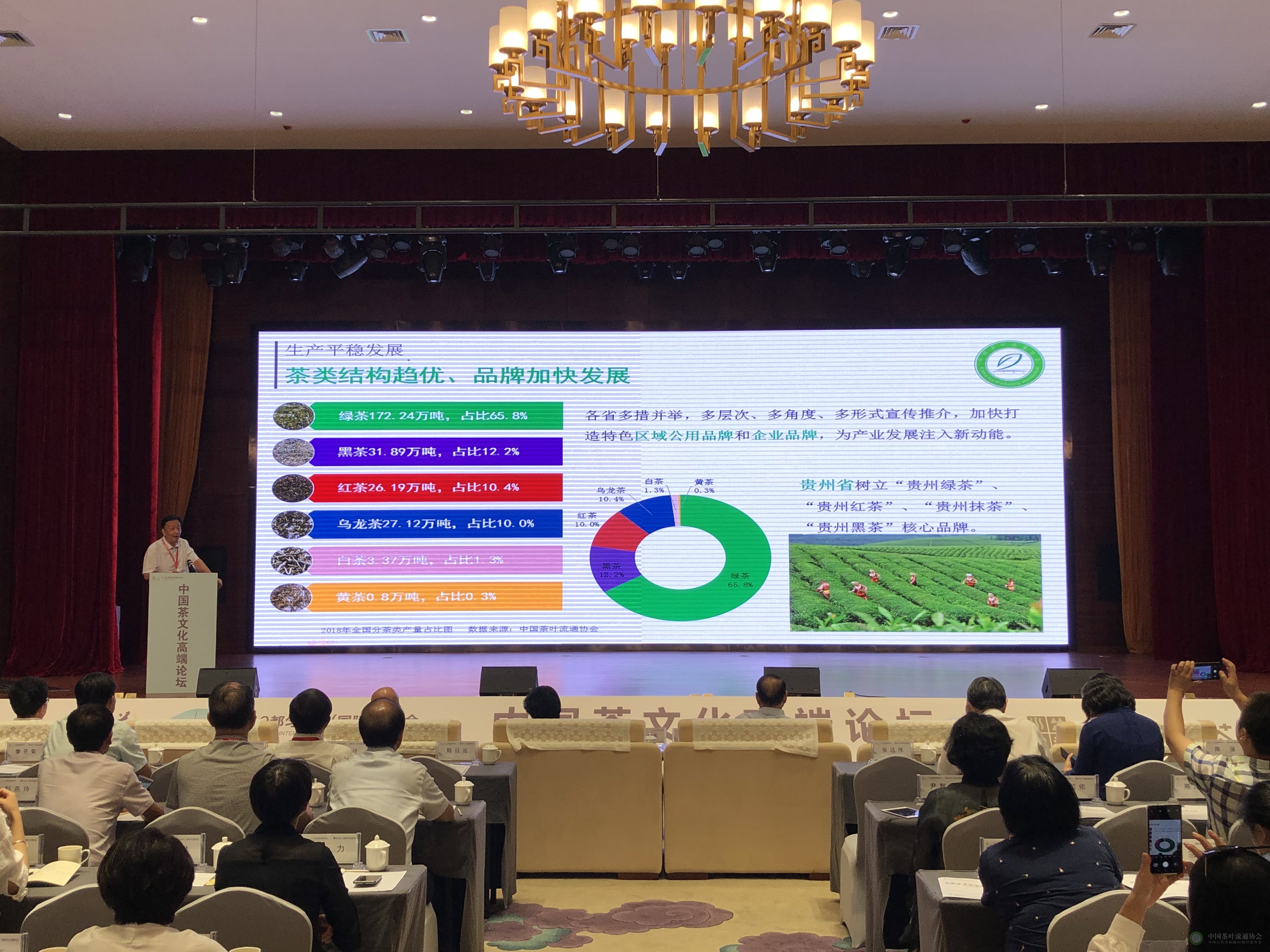 为深入探讨如何实现“都匀毛尖”茶产业一二三产融合发展的路径,9月17日下午,在都匀经济开发区毛尖酒店举行了中国茶文化高端论坛,来自各茶行业组织、贵州省农业农村厅、全国知名高校的专家和学者围绕全国茶叶行业发展趋势、科技提升、国际化发展方向以及茶文化与产业融入等方面进行解读,中国茶叶流通协会受邀在此次论坛中针对茶业经济形势进行了深入分析。