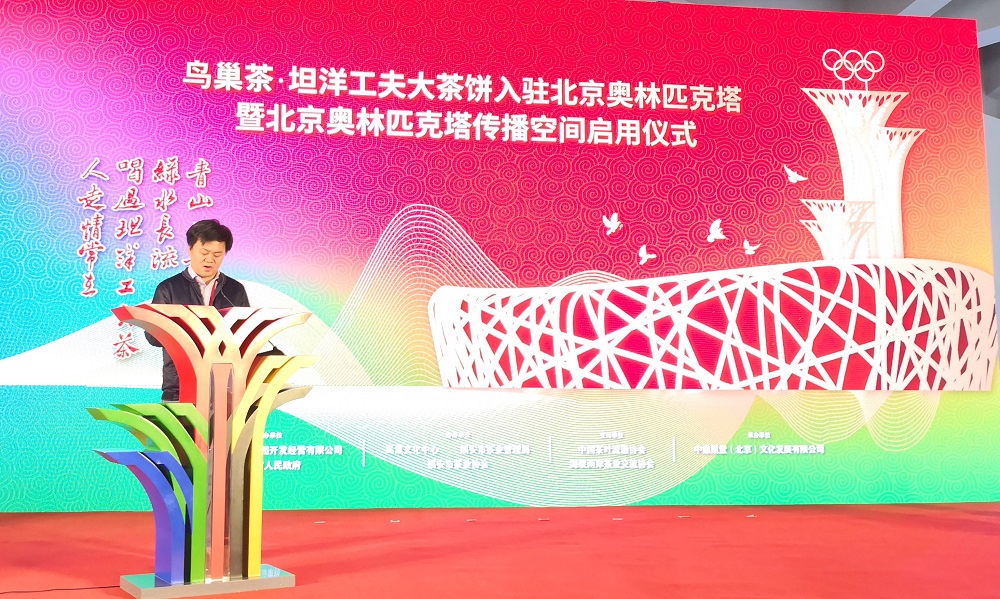 11月26日,“鸟巢茶·坦洋工夫”大茶饼入驻北京奥林匹克塔暨北京奥林匹克塔传播空间启用仪式在北京奥林匹克塔举行。福建省政协原副主席、海峡两岸茶业交流协会会长陈绍军,福安市委副书记、市长钟宜国,全国人大代表、福安坂中畲族乡后门坪村村委会主任雷金玉等嘉宾出席了本次仪式。受中国茶叶流通协会王庆会长委托,梅宇秘书长出席活动并致辞。
