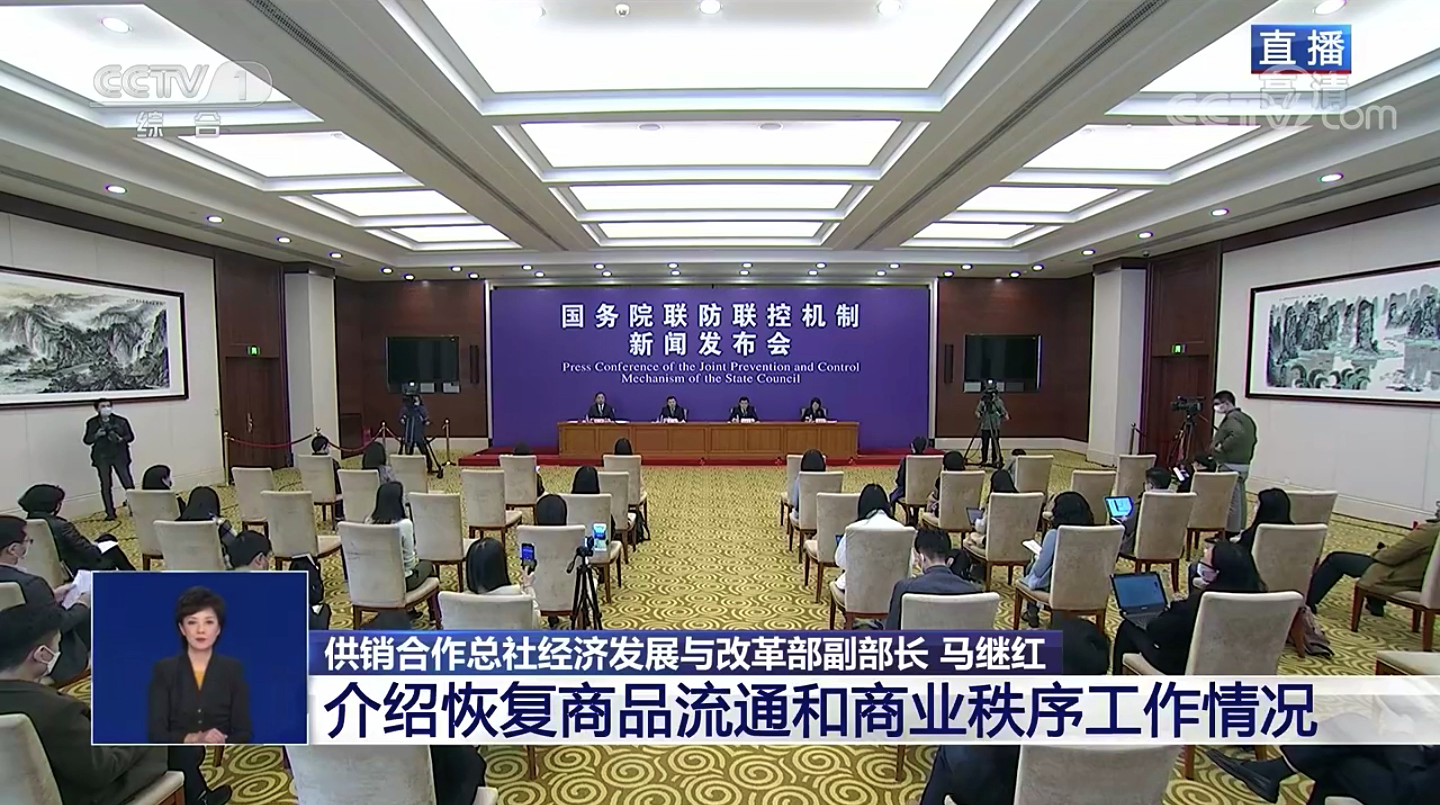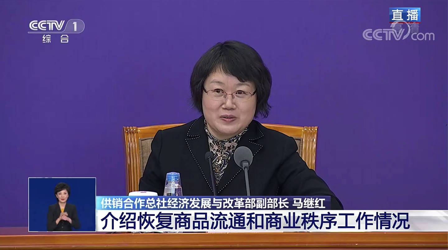 2020年3月28日下午,国务院召开联防联控机制新闻发布会,邀请供销合作总社、商务部、税务总局相关司局负责人介绍恢复商品流通和商业秩序工作。总社经济发展与改革部马继红副部长代表总社出席发布会并答记者问。
