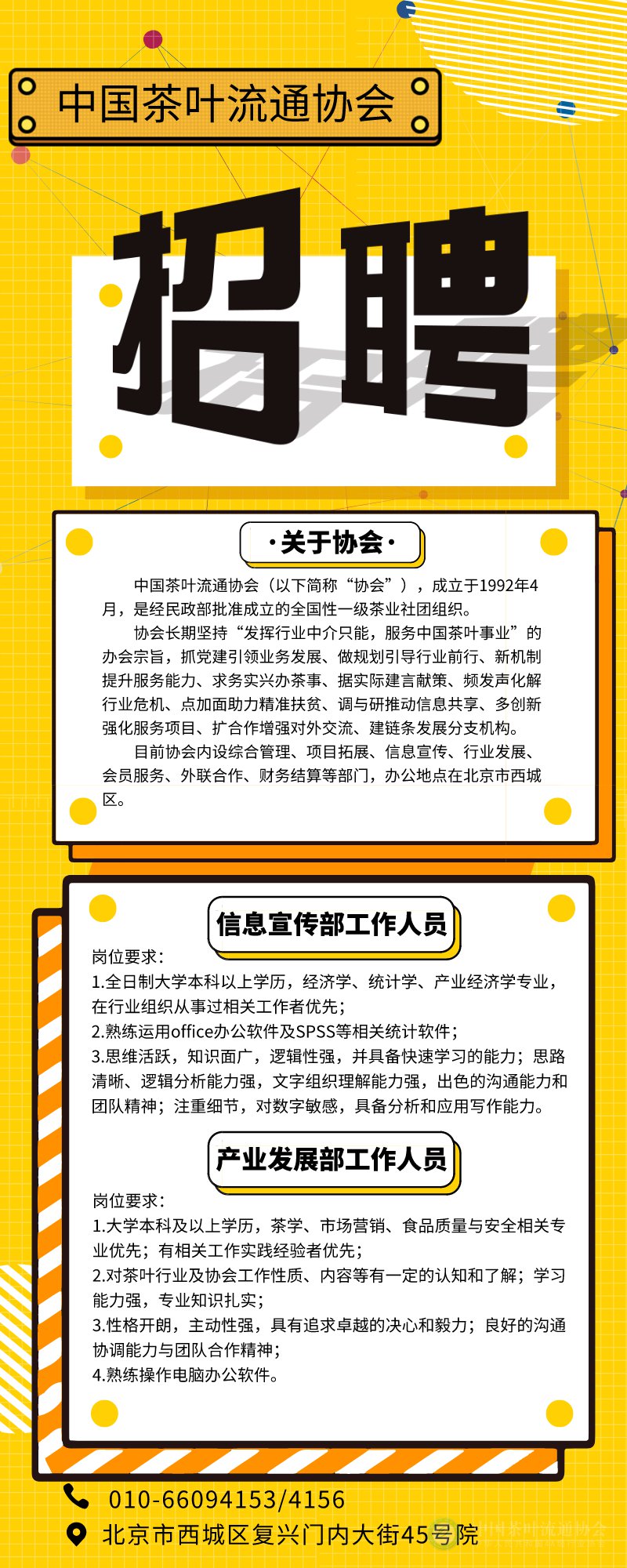因工作需要,中国茶叶流通协会面向社会公开招聘工作人员。