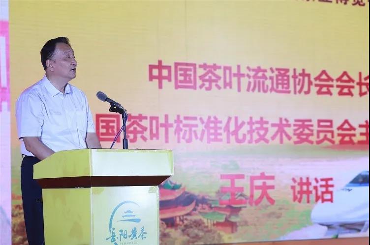 开幕式上,王庆会长发表了热情洋溢的致辞:洞庭秀色,巴陵胜状。岳阳襟带万里长江,怀抱浩瀚洞庭,自古就是商贾云集之处、文人兴会之所、兵家必争之地。同时,岳阳也是中国优质茶产区和黄茶的主产地,得天独厚的自然环境,孕育了丰富的茶叶资源、优良的茶叶品质,更孕育了独特的君山银针黄茶文化。作为中国茶叶行业的服务者、引领者,中国茶叶流通协会多年来始终关注中国黄茶产业的发展。通过凝聚力量、形成共识,加强合作、促进共赢,产销对接、开拓市场等工作持续推动产业发展。随后,岳阳市委书记王一鸥宣布本届茶博会开幕。在颁奖环节中,举行了中国黄茶斗茶大赛颁奖仪式和岳阳十大名茶颁奖仪式;推介环节上,岳阳市人民政府副市长邱虹与中国工程院院士刘仲华先后隆重推介岳阳黄茶。