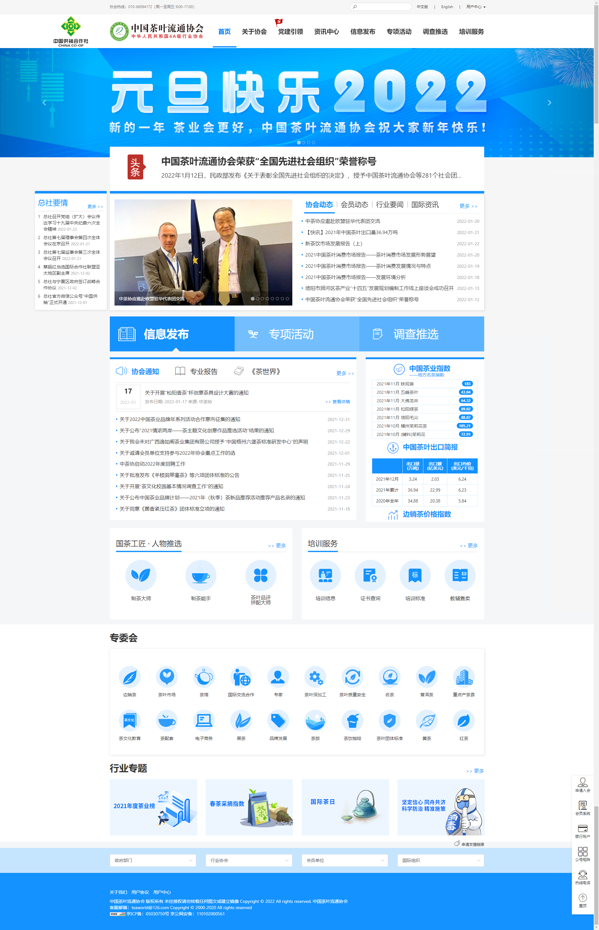 2022年春节前夕,中国茶叶流通协会官方网站(www.ctma.com.cn)完成改版升级并正式上线运行。协会官网是中茶协服务协会会员、发布行业动态、汇集信息资讯的重要窗口。此次改版升级着眼于解决社会各界访问网站过程中的实际问题,对网站的UI界面、功能设计、会员专项服务等都作了较大调整,进一步提升协会服务会员的精细化、规范化水平。