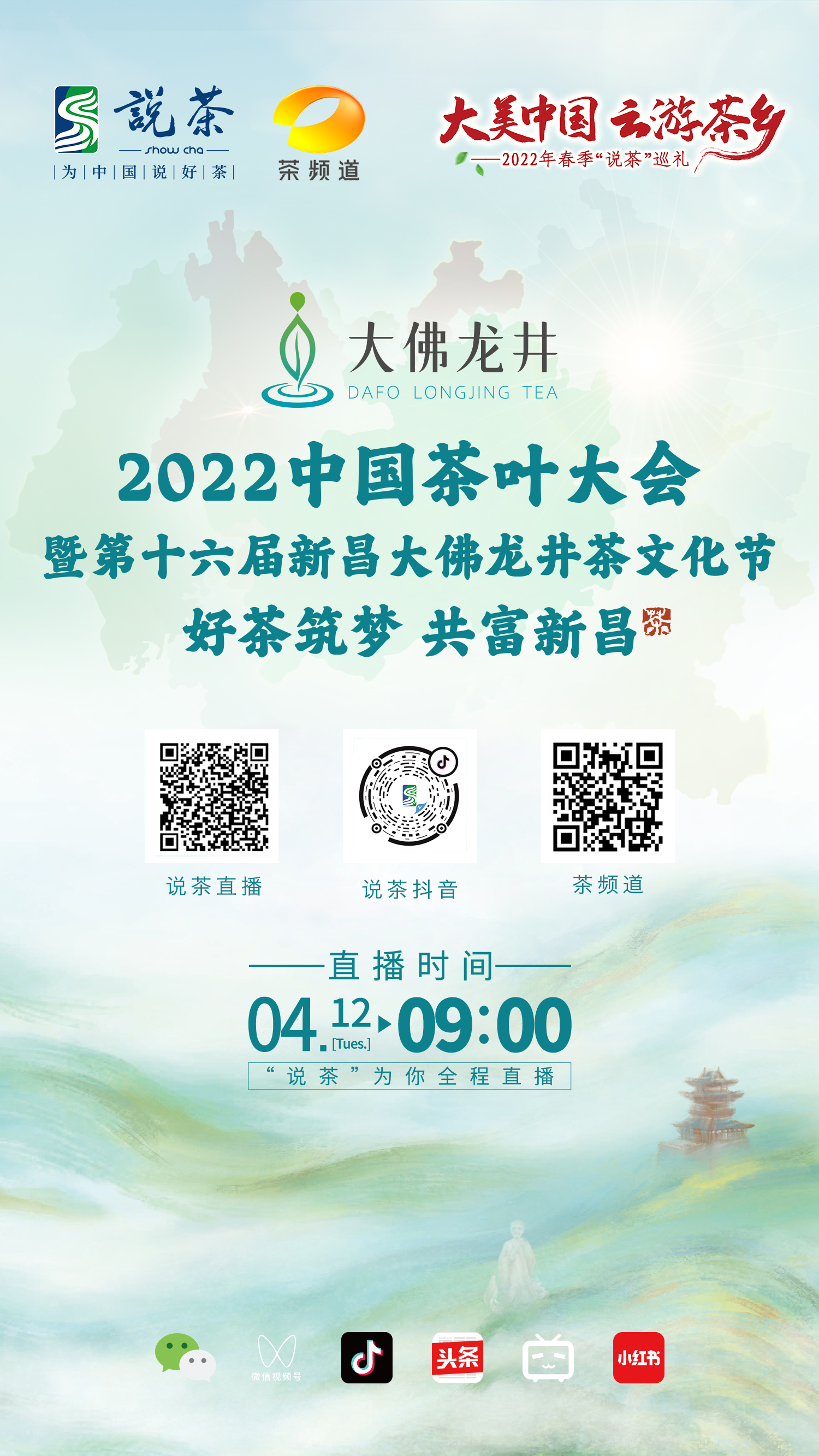 2022中国茶叶大会暨第十六届新昌大佛龙井茶文化节开幕式将于4月12日上午9:00正式拉开帷幕。
