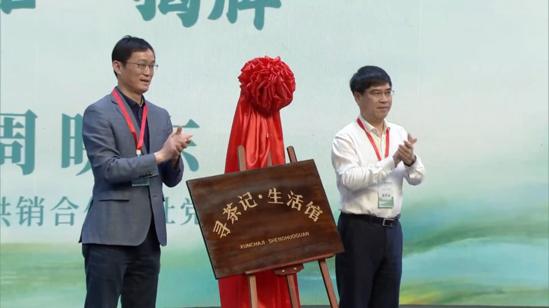 绍兴市农业农村局局长陈建勇先生、绍兴市供销合作总社党委书记周晓东先生共同为“寻茶记·生活馆”揭牌