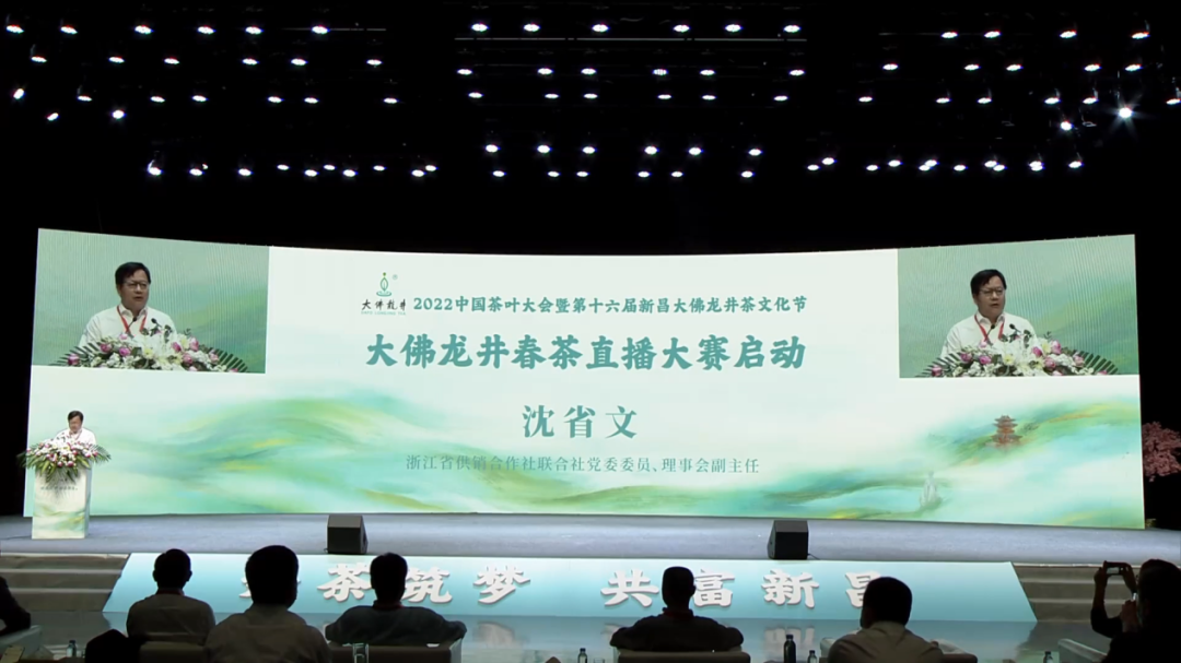 浙江省供销合作社联合社党委委员、理事会副主任沈省文先生宣布大佛龙井春茶直播大赛启动