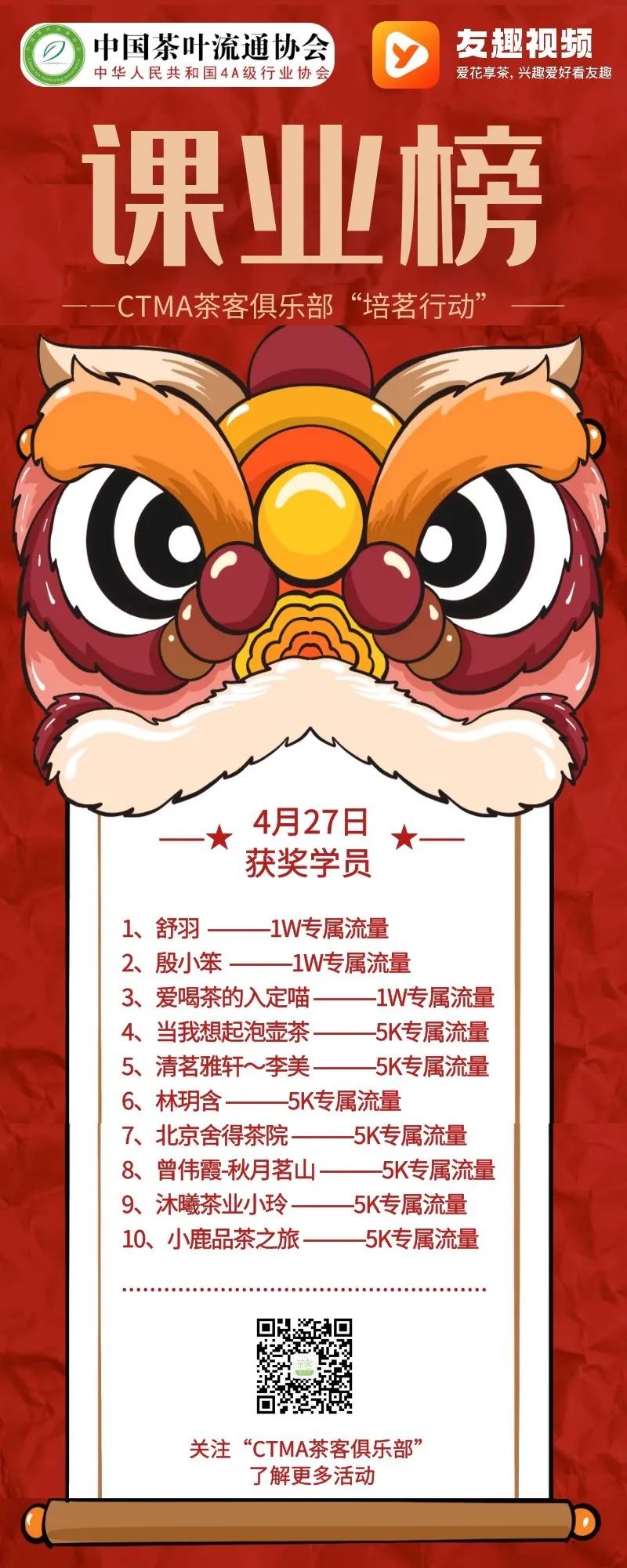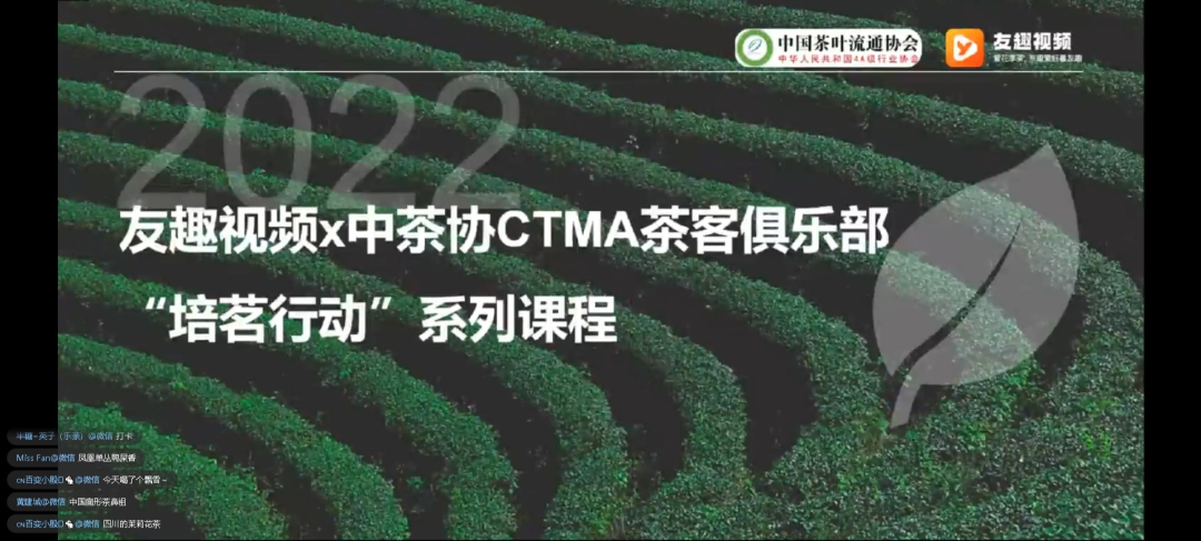 CTMA茶客俱乐部“培茗行动”是协会为广大茶人打造的专项培训活动,首期活动我们携手小红书旗下“友趣视频”APP,开展了短视频创作免费基础培训。今后,俱乐部将继续汇聚行业内外优势资源,携手更多优秀平台与我们一起,不断完善培训体系,为广大茶人提供优质的学习内容,为行业输出优秀人才,为茶文化传播提供助力,为产业发展做出贡献。
