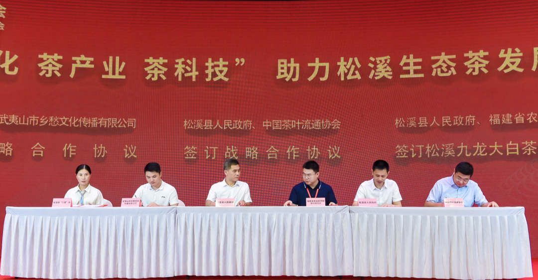 为了进一步深化松溪县茶产业发展,做好“三茶”统筹工作,助力松溪生态茶发展,会上还进行了“九龙大白茶核心产区”荣誉称号授牌仪式,战略合作协议签约仪式、采购意向签约仪式。