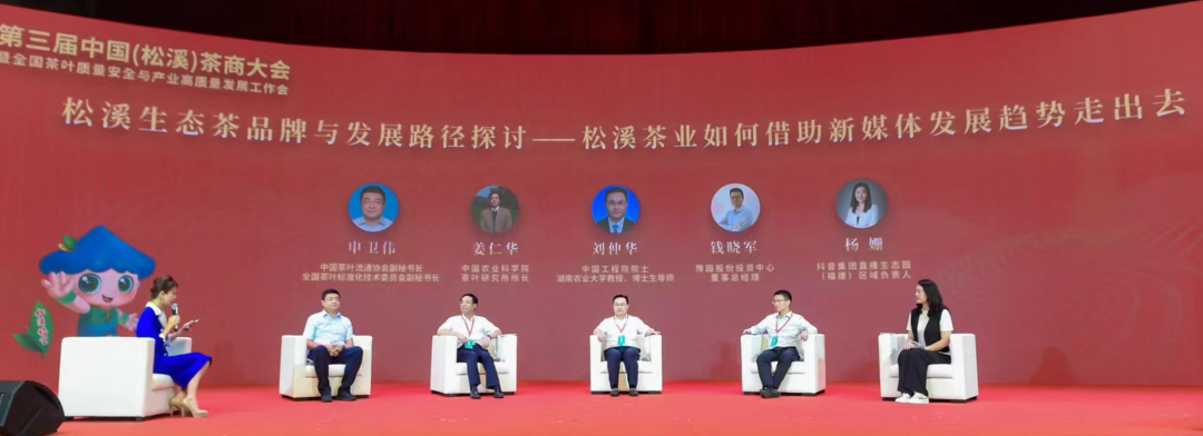 开幕式后,与会人员一同参加了第三届松溪生态茶产业发展高峰论坛,刘仲华院士等来自省内外的专家学者齐聚一堂,先后进行了《松溪茶产业高质量发展的思考》《关于促进茶业融合发展的实践与思考》主题报告,并以圆桌论坛的形式共同合力探究松溪茶业如何借助新媒体发展趋势走向未来。