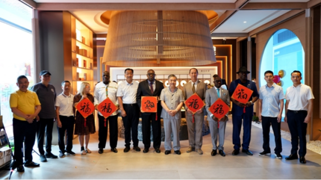 在首届福鼎白茶国际品鉴会上,中外友人共同品茶论道,嘉宾们还分享了中国“福”文化和茶文化。王庆会长与陈兴华书记等等六位嘉宾向六位驻华使节友人送上“福”字书法作品,希望让更多的国际友人成为中国“福”“茶”文化的国际传播使者。