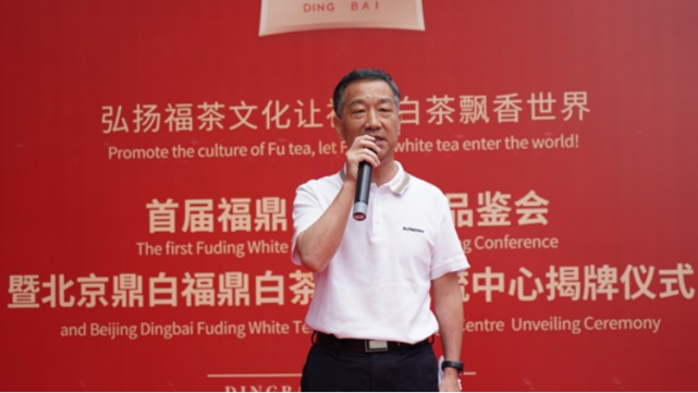 中国茶叶流通协会会长、全国茶叶标准化技术委员会主任委员王庆受邀出席活动并致辞,他指出“当前,福鼎白茶产业稳步发展,持续走高,在全球茶叶市场中异军突起,品牌效益逐年提升,成为福鼎致富增收的支柱产业,乡村振兴的优势产业。福建鼎白茶业有限公司福鼎白茶文化交流中心在北京揭牌,标志着福鼎白茶品牌、中国白茶有了新的发展。相信在福鼎市委市政府的坚强领导下,在福建鼎白茶业等品牌企业和福鼎茶人的共同努力下,福鼎白茶产业定能够百尺竿头、更进一步。”
