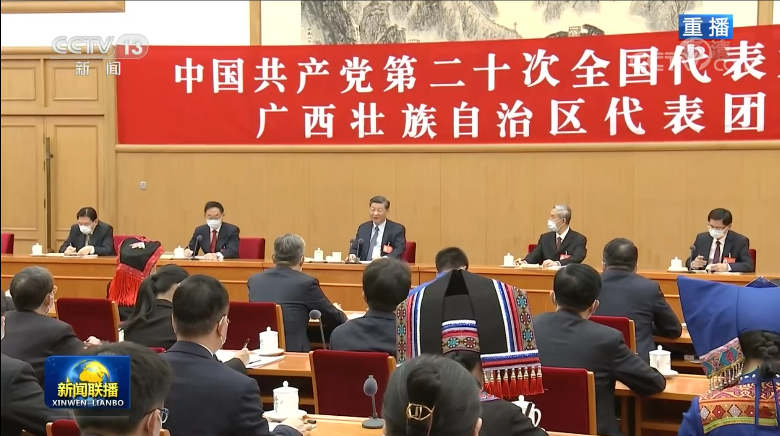 10月17日,习近平同志参加党的二十大广西代表团讨论。