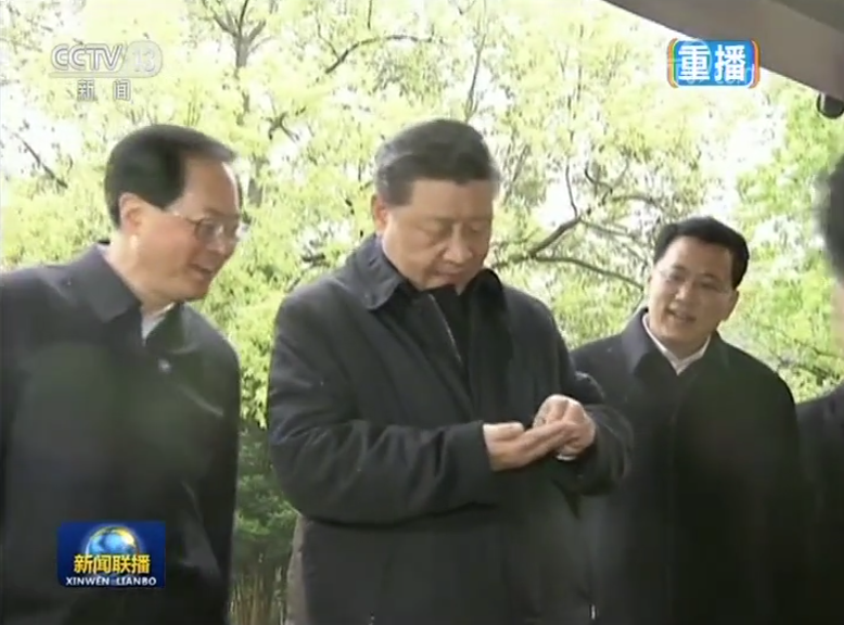 2020年3月31日,习总书记在浙江调研,到访西溪湿地时,也与制茶师傅亲切交流,提到西湖龙井茶的炒制技艺,说到:“两个巴掌做出来的东西,有些科技还是无法取代的。”