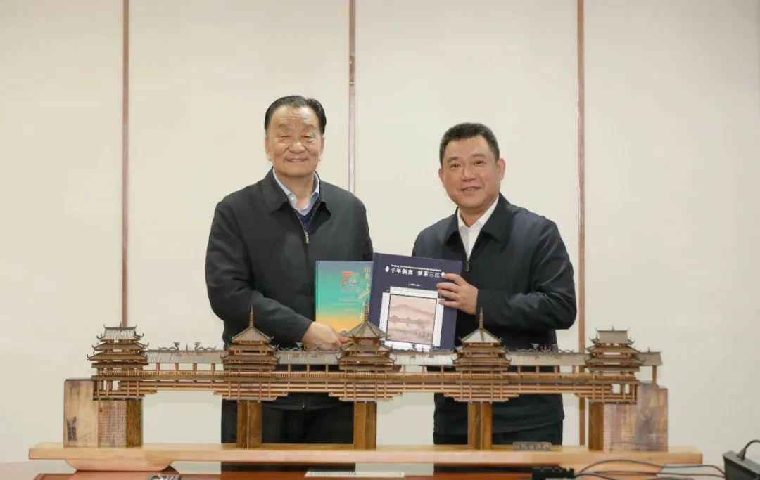 柳州市委常委、三江县委书记邝驱代表三江县向中国茶叶流通协会赠送三江风雨桥模型及《千年侗寨 梦萦三江》等书籍,以感谢中国茶叶流通协会长期以来对三江发展的关心、支持和帮助。