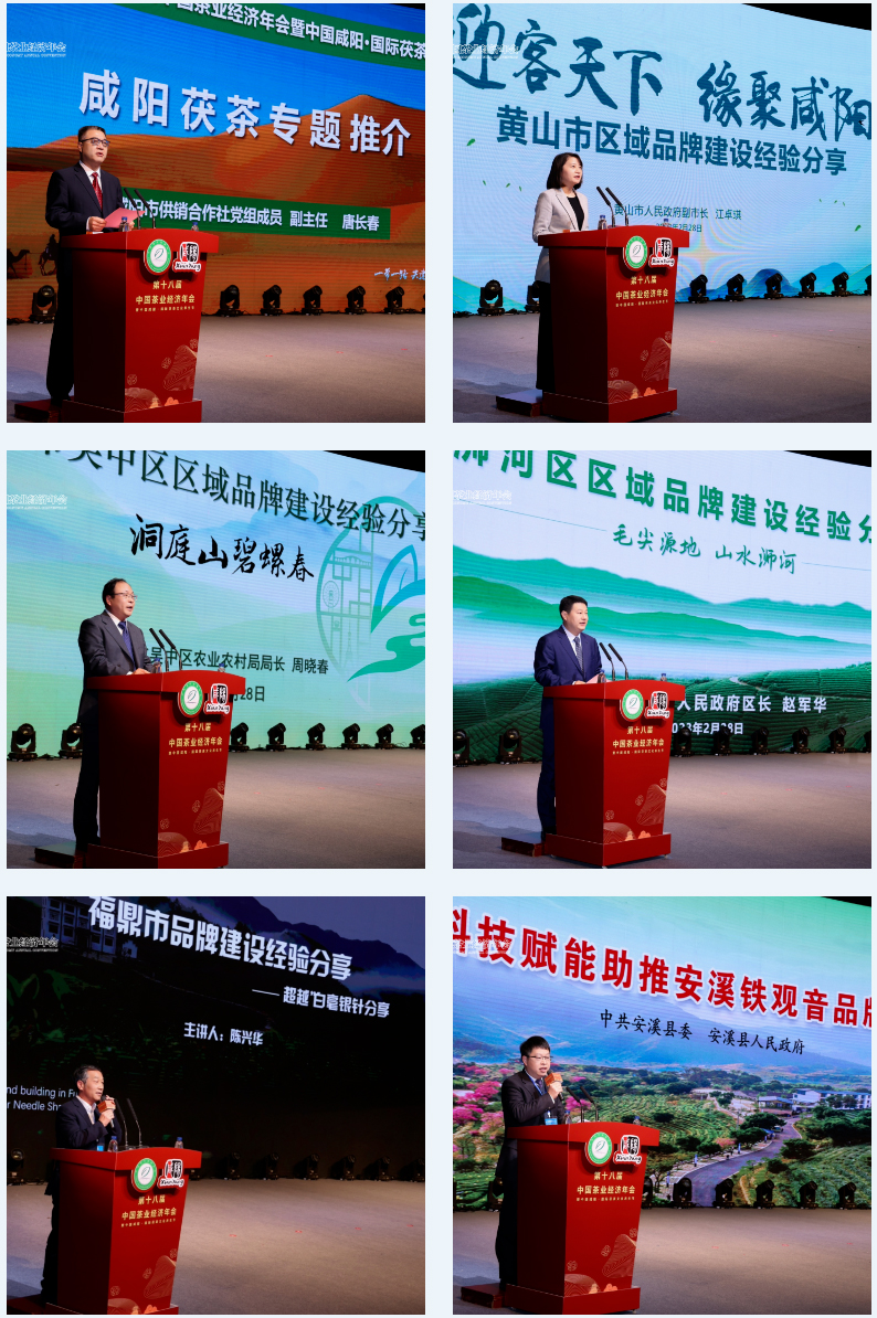 来自咸阳市、黄山市、苏州市吴中区、信阳市浉河区、福鼎市、安溪县、三江县、松阳县等全国重点茶叶产区的政府代表和企业代表分别从区域品牌培育和企业品牌打造的不同角度介绍各自发展的先进经验。