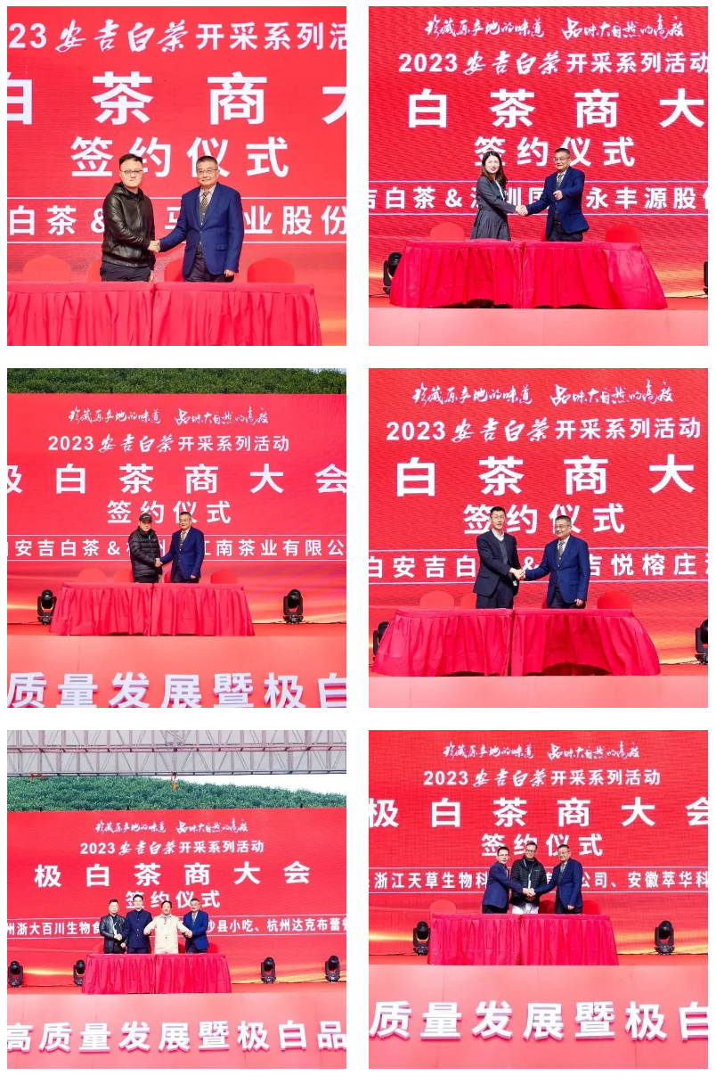 会上极白与八马茶业股份有限公司、深圳国瓷永丰源股份有限公司、杭州忆江南茶业有限公司、安吉悦榕庄酒店、浙大百川生物食品技术有限公司、天草生物科技有限公司、安徽萃华科技股份有限公司、沙县小吃集团有限公司、达克布蕾等签订战略合作项目。