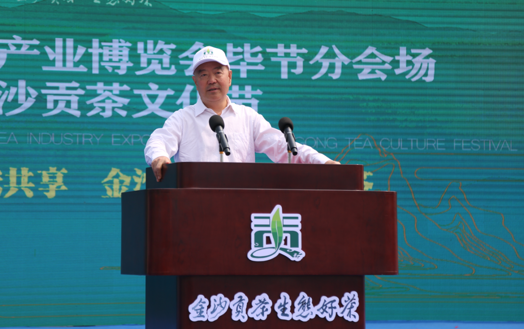 “以茶会友,共谋发展”,此次活动还邀请了来自行业内外的多名领导及嘉宾。贵州省人大常委会原副主任、贵州省茶文化研究会会长傅传耀发表讲话,中共金沙县委书记李涛致辞,金沙县人民政府副县长万纯飞作金沙贡茶推介,贵州金丽茶业有限公司党委书记、董事长王成现场作“贵州贡茶城”项目推介。此外,贵州省社会科学院党委书记、院长吴大华,贵州省茶叶协会常务副会长张达伟,贵州省农业农村厅党组副书记、副厅长胡继承,毕节市人大常委会副主任、市茶产业领导小组组长张超,毕节市人民政府副市长李勰等领导和嘉宾出席了开幕式。
