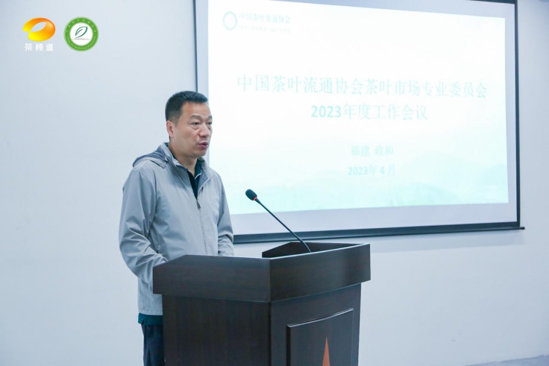 4月24日上午,中国茶叶流通协会茶叶市场专业委员会在政和县中国白茶城召开2023年度工作会议。