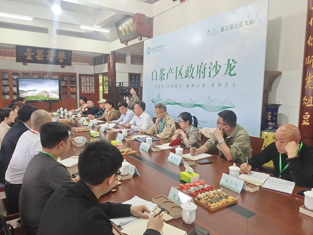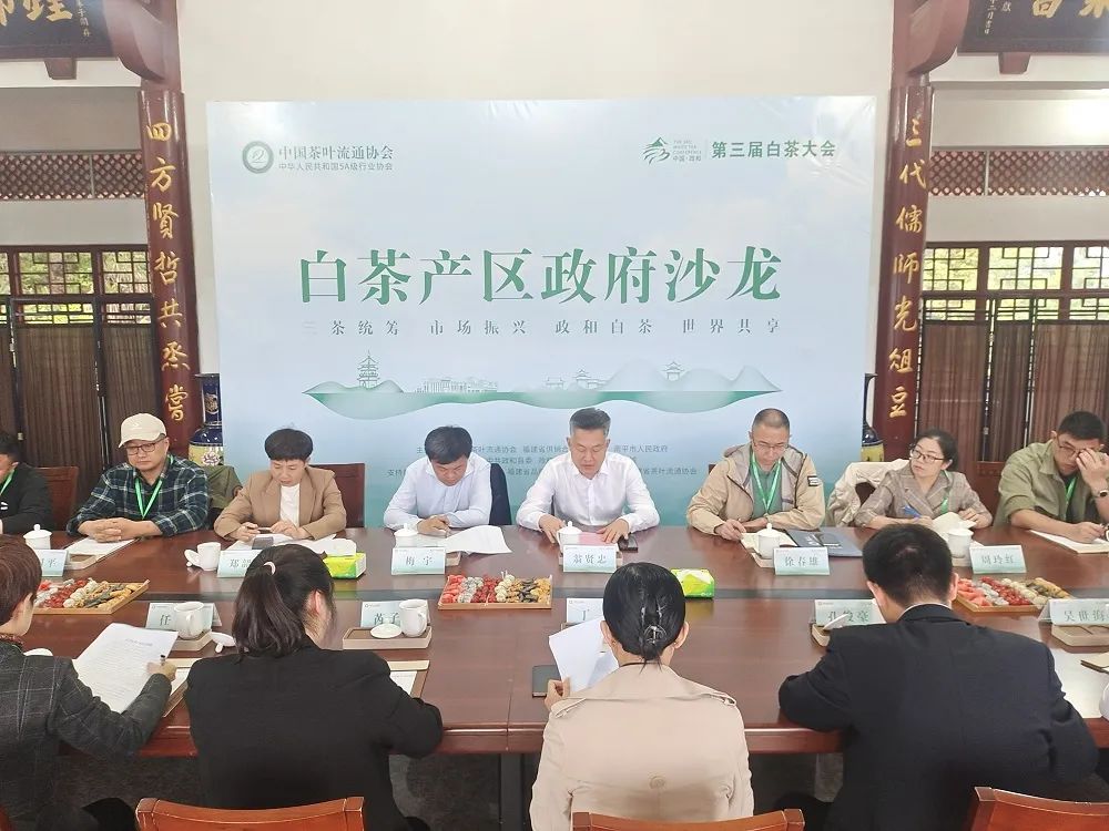 4月24日下午,2023白茶产区政府沙龙在政和县云根书院顺利举行。中国茶叶流通协会副会长梅宇,政和县人大常委会主任翁贤忠,福鼎市人大常委会副主任丁一芸,潜山市人民政府副市长孔俊豪,资溪县人大常委会副主任任文华,溧阳市供销合作总社党委书记、理事会主任芮子遐,汝城县九龙江国家森林公园管理处主任徐春雄等领导,以及休宁县、咸丰县、广宁县等茶叶主产区的相关政府代表出席了本次会议。会议由政和县人民政府副县长郑韶明主持。