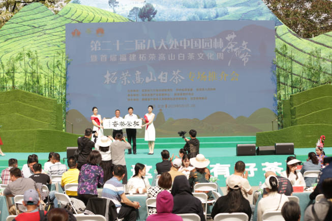 5月2日,第二十二届八大处中国园林茶文化节暨首届福建柘荣高山白茶文化周——柘荣高山白茶品鉴推介会在八大处公园柳溪山房广场举办。中国茶叶流通协会会长、全国标准化技术委员会主任委员王庆,中国茶叶流通协会副会长姚静波、秘书长肖星等一行受邀出席活动。