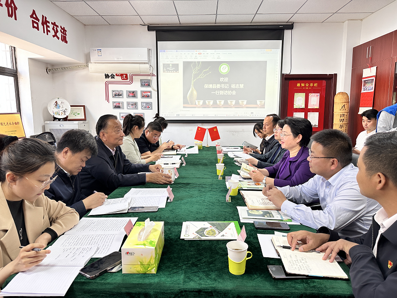 2023年5月8日,中国茶叶流通协会会长、全国茶叶标准化技术委员会主任委员王庆会见了保靖县委书记杨志慧一行。双方围绕保靖县茶产业发展现状、茶叶消费渠道拓展以及未来的合作事项等方面展开了交流。保靖县委常委、宣传部部长金敏,县人民政府副县长龙婵、刘文武等领导和同志参加了座谈。