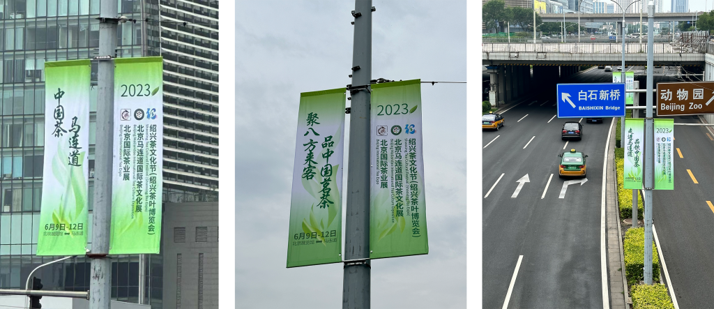 线下宣传方面,公交站牌、地铁安检口及北京国贸核心区银泰中心已投放“两展一节”宣传广告;同时,马连道大街、西直门外大街、西单北大街等西城区繁华地段也已铺设宣传道旗,为活动举办营造了良好的外部氛围。