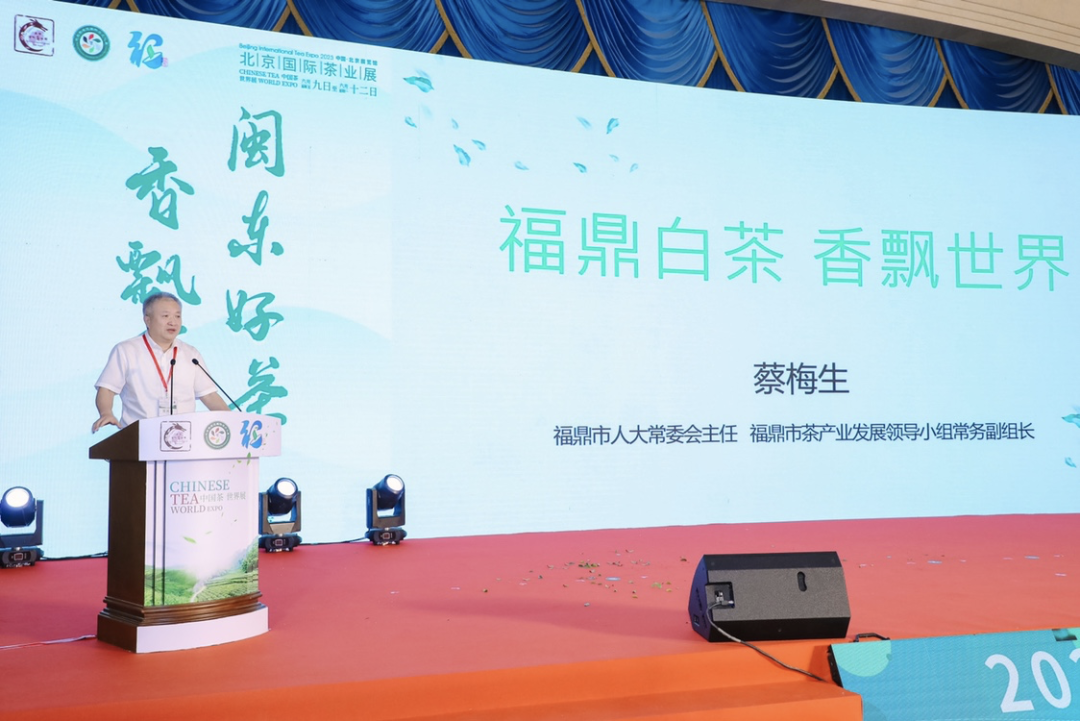 福鼎市人大常委会主任、福鼎市茶产业发展领导小组常务副组长蔡梅生推介福鼎白茶