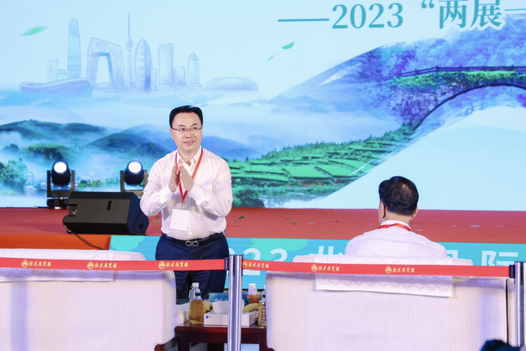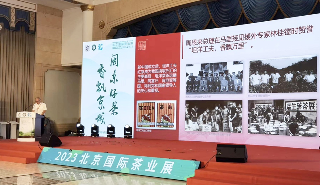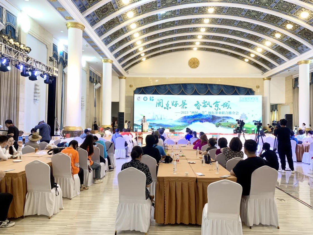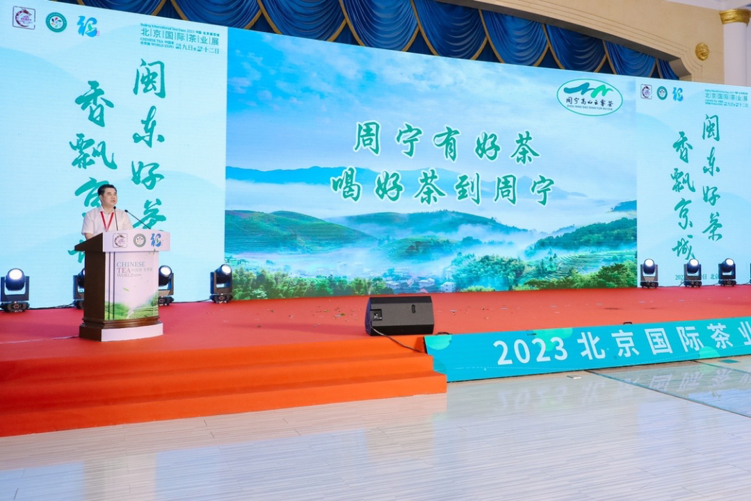 6月10日上午,“2023‘两展一节’闽东茶业联合推介会”在北京展览馆成功举办。中国工程院院士、中国茶叶流通协会荣誉会长、湖南农业大学学术委员会主任刘仲华,中国茶叶流通协会会长、全国茶叶标准化技术委员会主任委员王庆,北京市西城区委常委曾林峰,中国农垦经济发展中心副主任陈忠毅,福安市人大常委会党组书记、主任陈昌东,福鼎市人大常委会主任、福鼎市茶产业发展领导小组常务副组长蔡梅生,寿宁县人大常委会主任、县茶产业发展领导小组组长简树铃,柘荣县人大常委会主任、茶产业发展领导小组组长陈龙营,周宁县政协主席、县“三茶统筹”高质量发展工作领导小组常务副组长陈梁,中国茶叶流通协会副会长、福建春伦集团有限公司董事长傅天龙,秘书长肖星等领导,以及闽东地区各茶叶主产区县相关部门、行业组织、企业负责人和代表,北京及周边茶叶主销区茶商代表和新闻媒体近200人参加了会议。会议由中国茶叶流通协会副监事长申卫伟主持。