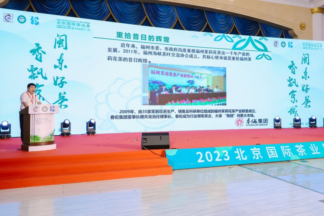 中国茶叶流通协会副会长、福建春伦集团有限公司董事长傅天龙推介福州茉莉花茶