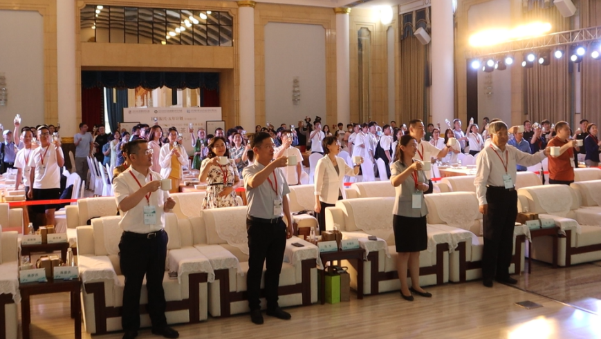在推介会的最后,全体与会嘉宾共同举杯,品饮新昌精品茶,为新昌点赞,为新昌精品茶点赞!并喊出“一杯好茶,万事新昌”,将这杯来自新昌的精品茶和这份来着新昌的美好祝福传递到北京“两展一节”的每个角落!