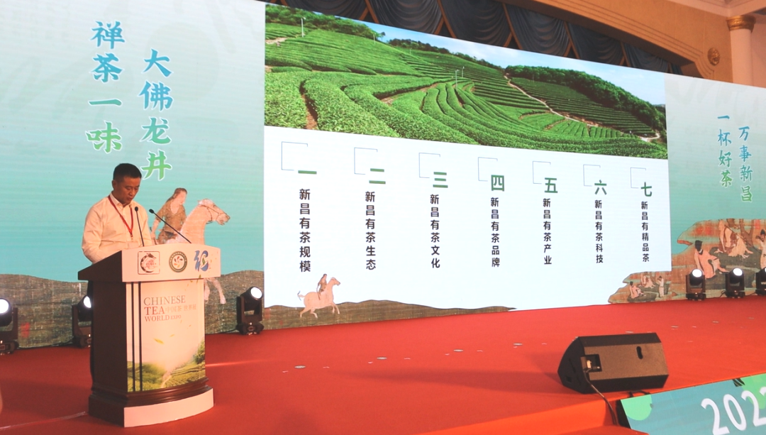 新昌县人民政府副县长俞镕翔作新昌精品茶推介,通过七个方面的“有”充分诠释新昌精品茶内涵。新昌的精品茶,是从一片叶子到一杯好茶全过程的精品。显著的规模优势、优异的生态环境、深厚的文化底蕴、卓越的品牌价值、辉煌的产业成就、强劲的科技支撑共同造就了新昌精品茶。