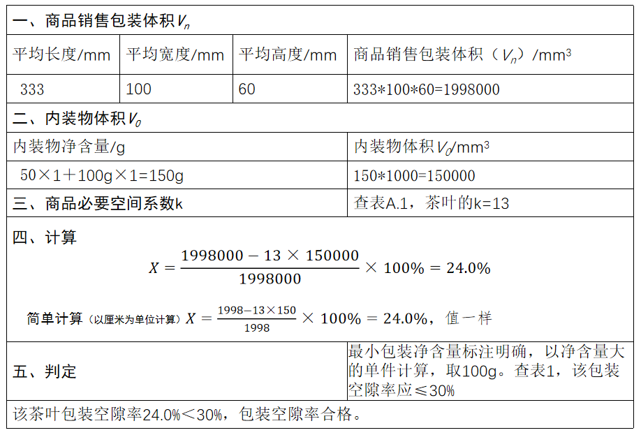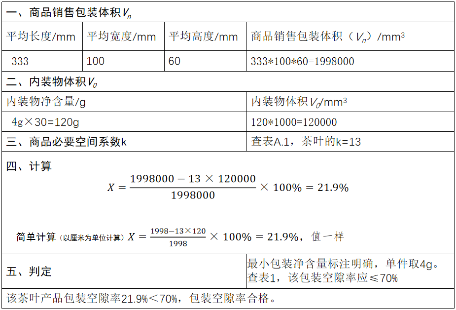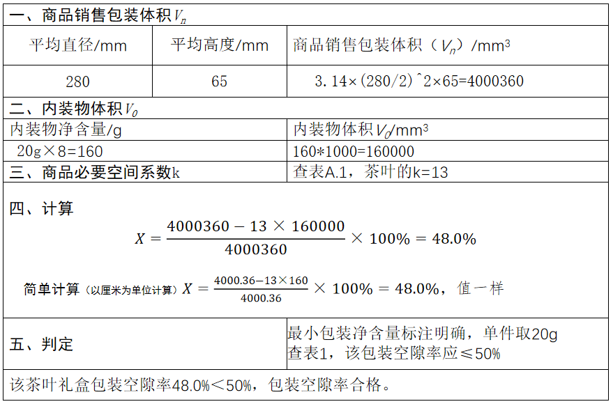 注:形成综合商品的两种及两种以上商品,必须是同为食品或同为化妆品。综合商品的包装空隙率应以单件净含量最大的产品所对应的空隙率为准。